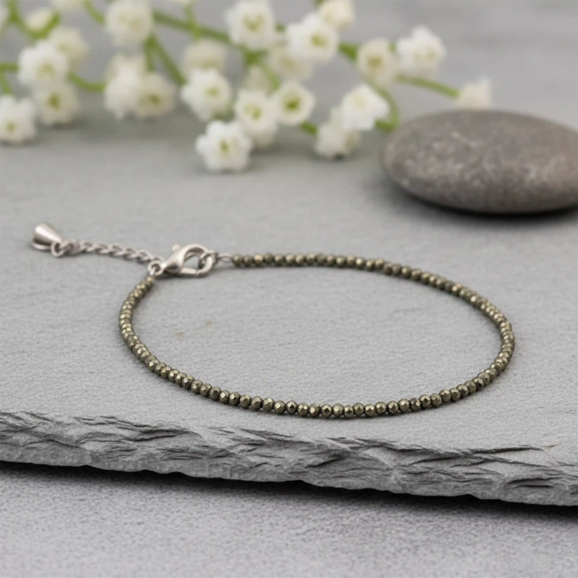 Attract money, success and walk with confidence wearing this Raw Pyrite Anklet. Wearing Pyrite on your ankle connects its money-attracting energy directly with the earth, grounding your ambitions and helping you take firm, successful steps towards financial success and stability.